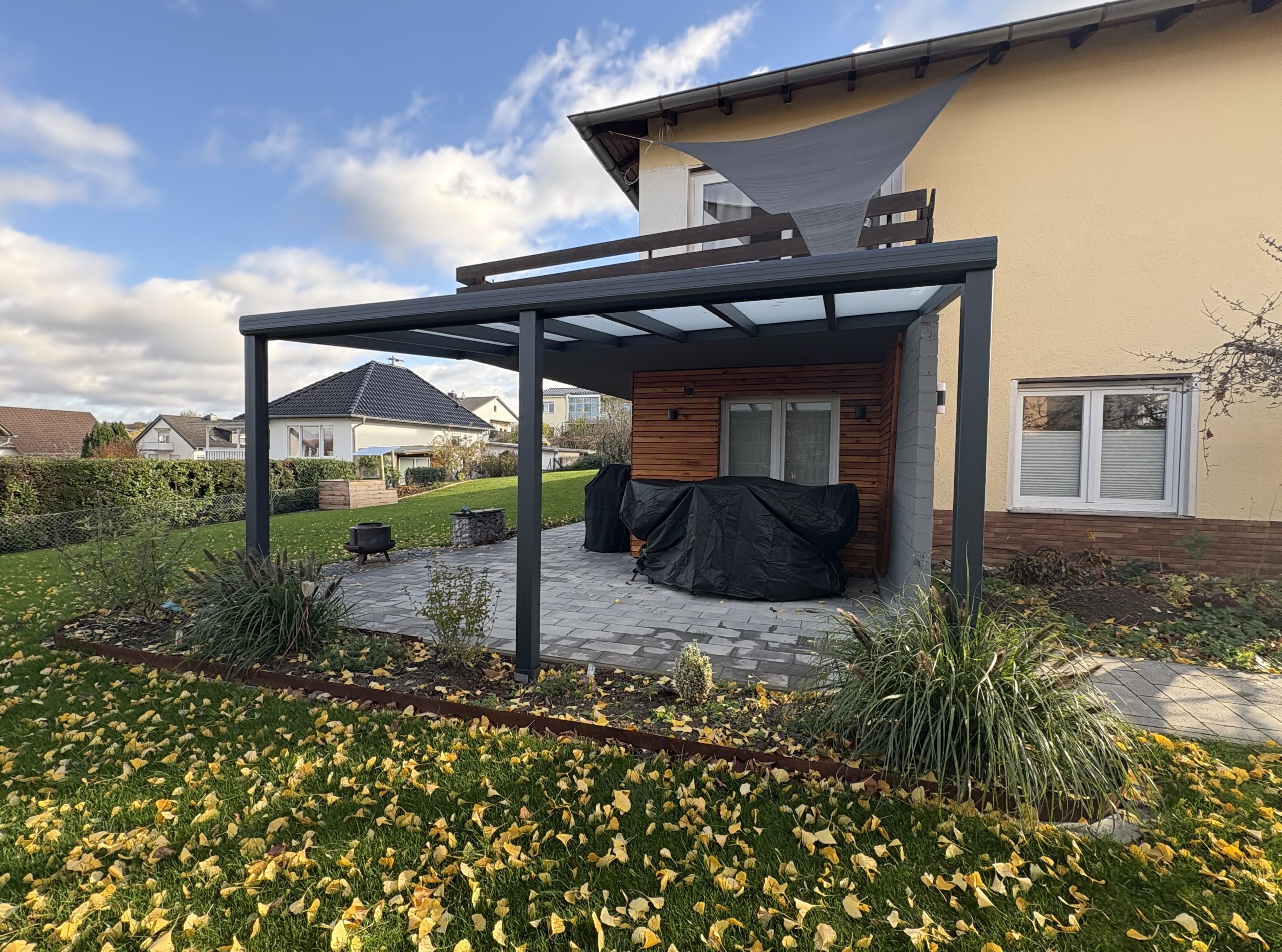 Genießen Sie die frische Luft und den Ausblick auf Ihren Garten, ohne sich Gedanken über das Wetter machen zu müssen. Unsere Terrassenüberdachungen sind langlebig, robust und individuell anpassbar, um Ihren persönlichen Stil und Bedürfnisse zu erfüllen. Wir bieten eine große Auswahl an Größen und Farben, um sicherzustellen, dass Ihre Terrassenüberdachung perfekt zu Ihrem Zuhause passt.
